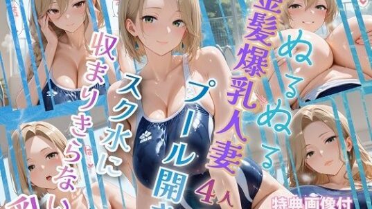 おっぱい ぬるぬる金髪爆乳人妻4人のプール開き スク水に収まりきらない乳【エロ漫画買うならココ!】d_751288