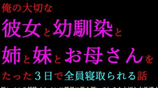 ノベル 転校してきたヤリチンイケメンに俺の大切な彼女と幼馴染と姉と妹とお母さんをたった3日で全員寝取られる話【エロ漫画買うならココ!】d_746797 2026.03.21 eromangau ノベルビッチ人妻・主婦処女実妹寝取られ・NTR寝取り・寝取られ・NTR幼なじみ成人向け母親浮気犬ソフト男性向け